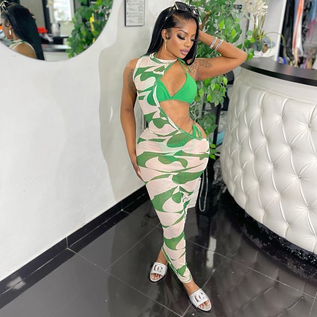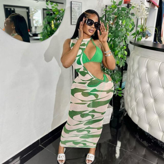 NastyENF Seaside Mesh Beach Bikini Set with Open Side Maxi Dress
