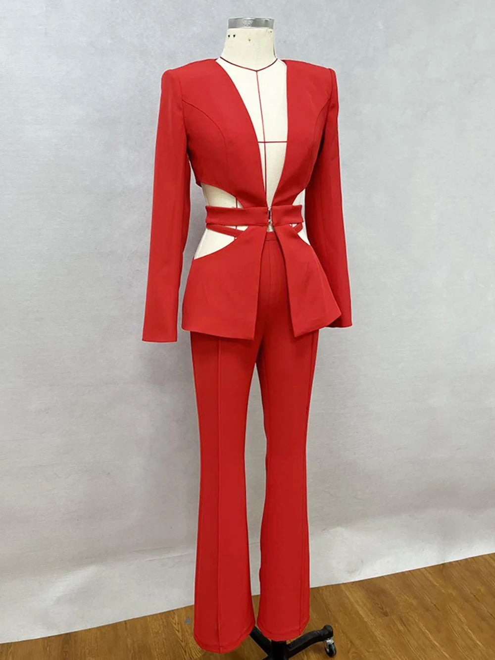 NastyENF Cut It Out Sexy V-neck Long Sleeve Jacket+High Waist Flare Pants with Cutout Detail