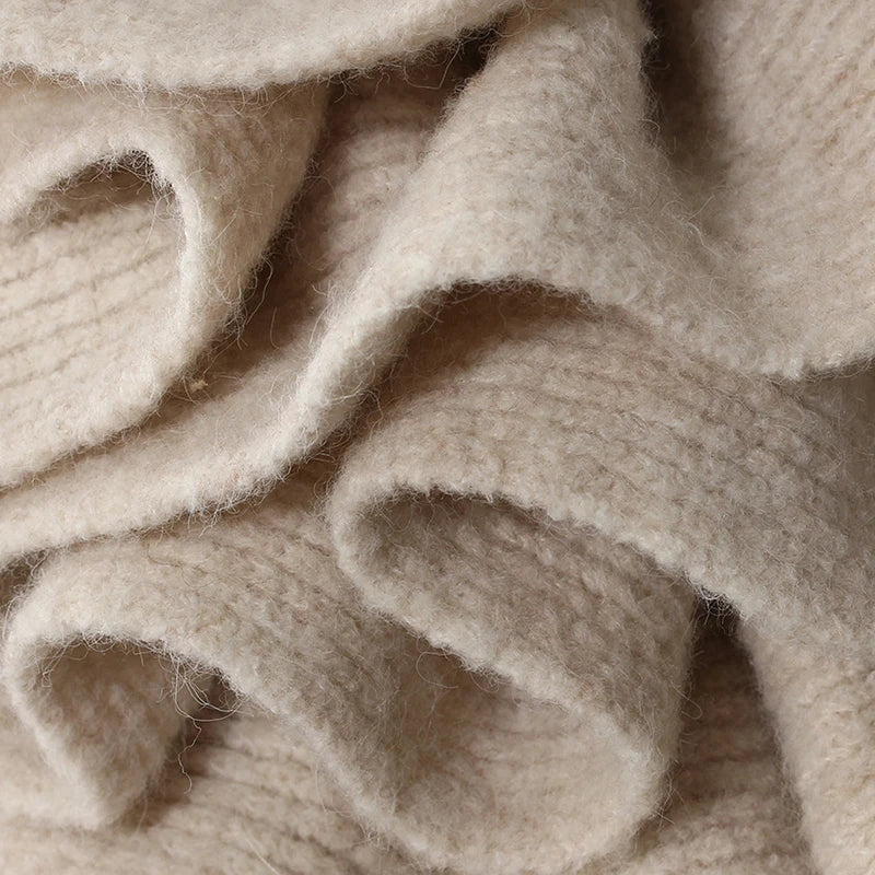 NastyENF Effortless Long Sweater Coat with Three Dimensional Flower Mini Skirt and Knitted Cardigan
