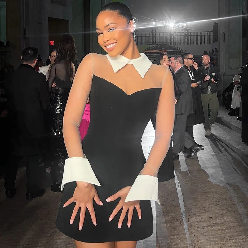 NastyENF Never Basic New Lapel Mesh Patchwork A-Line Dress