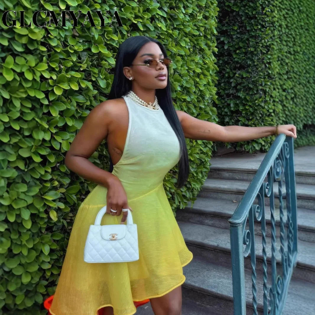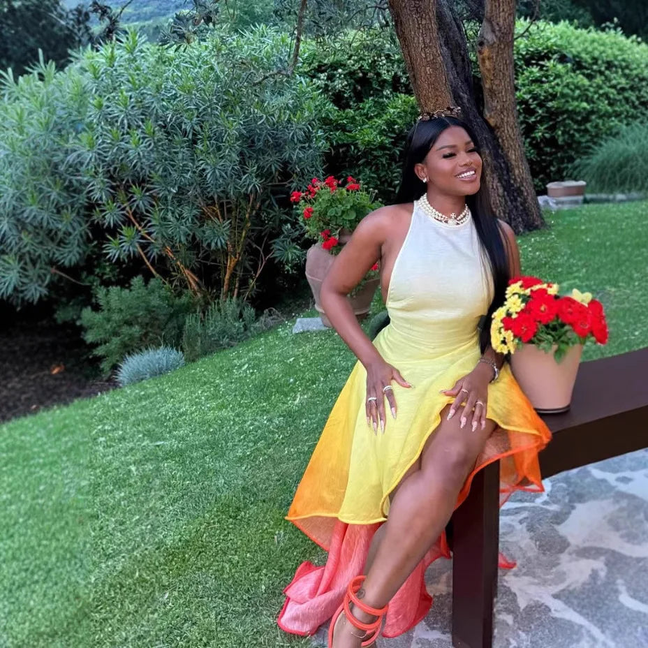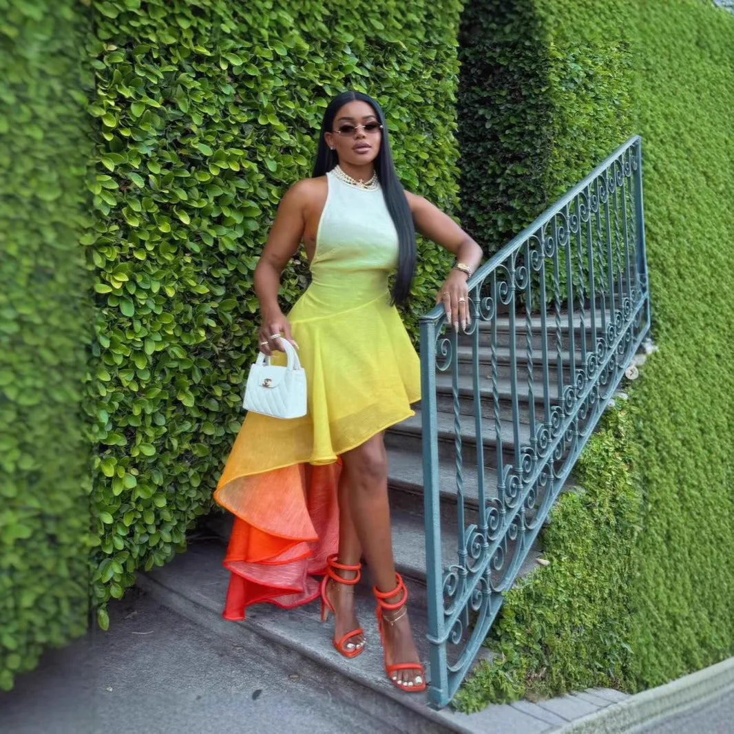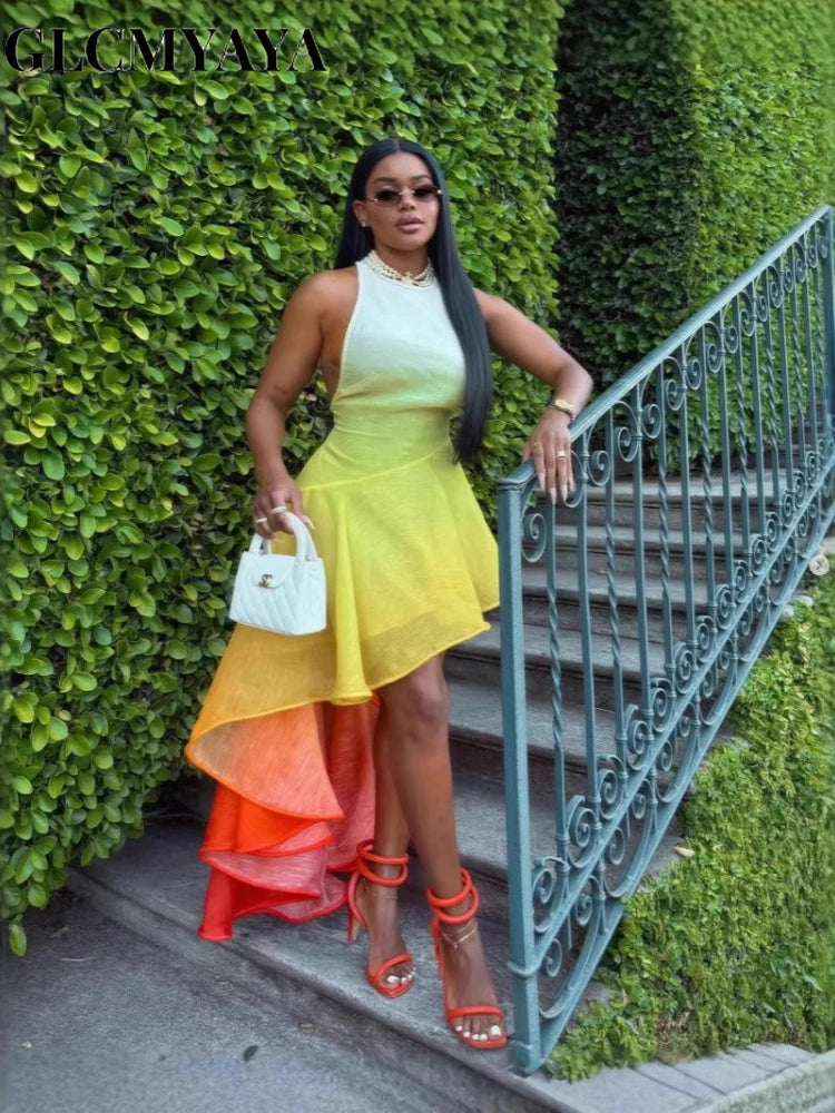 NastyENF Sunsets O-neck Gradient Print Sleeveless Mermaid Dress