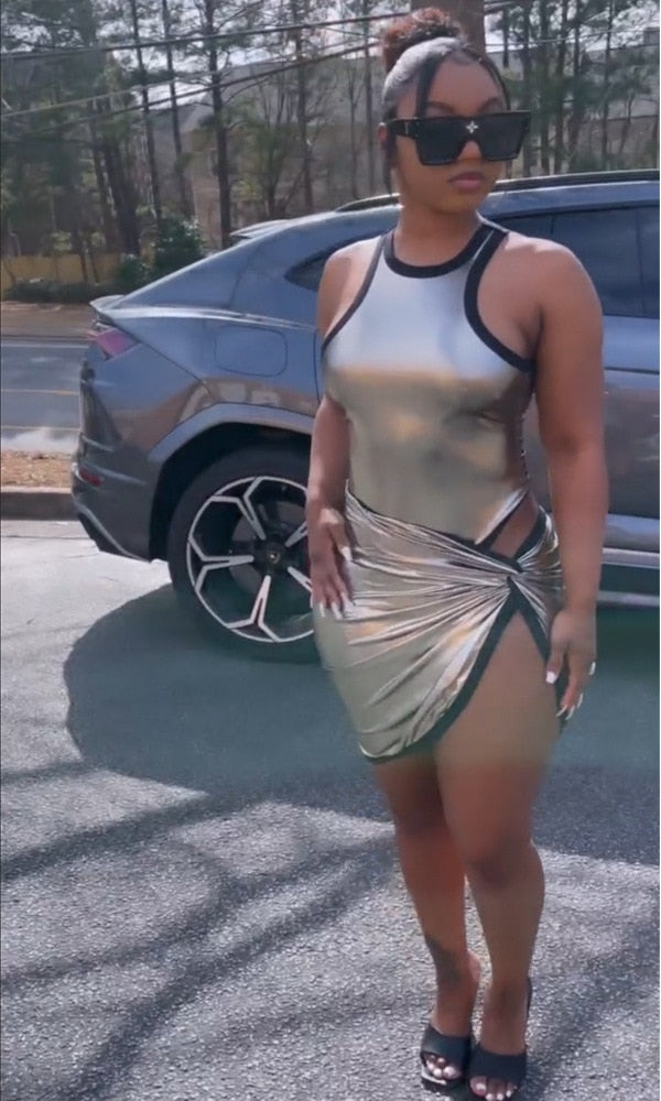 NastyENF Silver Medal Sexy Bodysuit Top and Mini Skirt Set